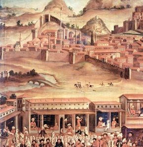 O manastır sanırım şu resimde işaretlediğim yer. Benim o tabloda en merak ettiğim yer, tablonun en alt kısmında yer alan binalar ve orada görünen camidir. Orası neresi ve o yapılar halen duruyorlar mı? Bunu gerçekten merak ediyorum.
