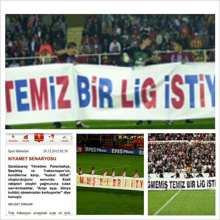 Yıl 2012 ve değişen hiç bir şey yok.Sadece değişen bukalemunspoerluların rengi.Yıl 2005 'de Bjk'lılar üçlü ittifakın içindeydi ama 2012'de Bjk nın yerine (ki o da dahil olabilir) an itibarıyla Gs'ın küçük tetikçisi Ordu başkanı ve Nedim enişte görev almıştır.Tabi sayı bununla sınırlı kalmasın, Bursa ve diğerlerini de bu gruba bekliyorum...