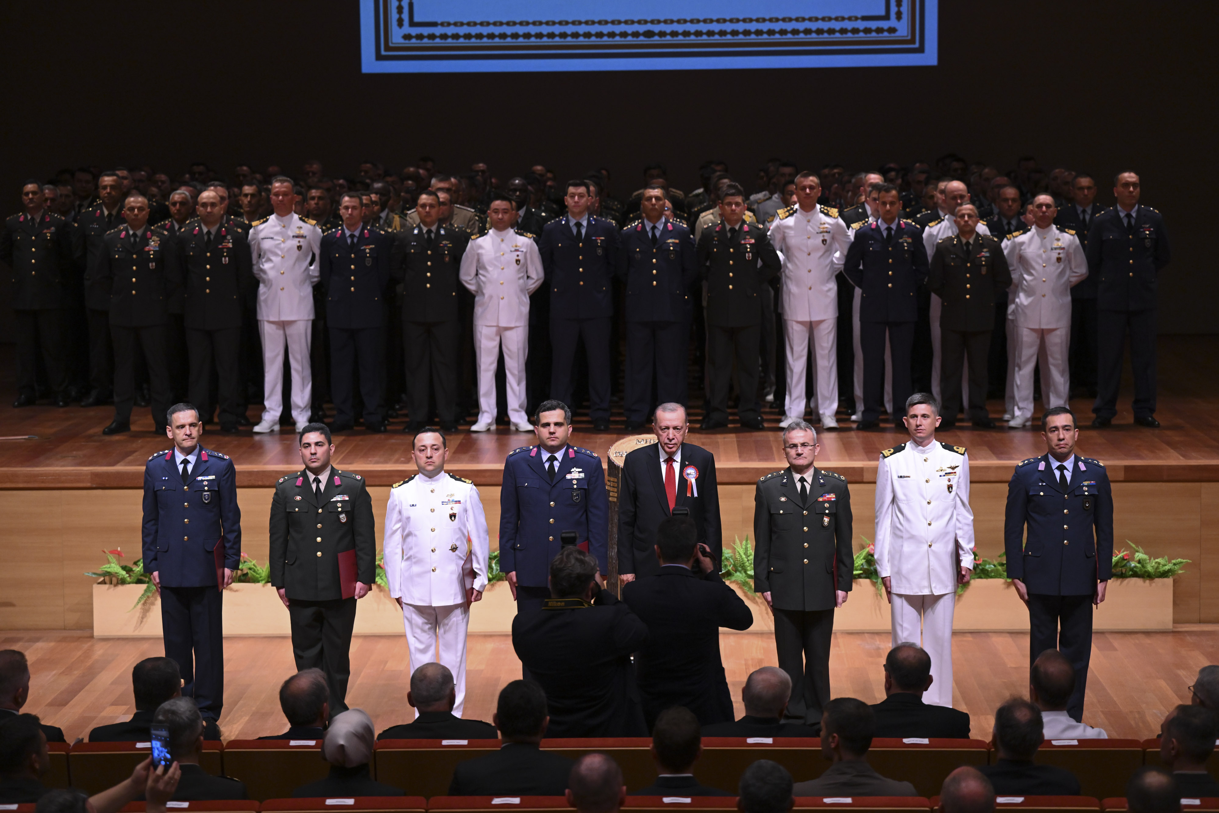 Cumhurbaşkanı Erdoğan, Milli Savunma Üniversitesi'ndeki 10. Dönem Müşterek Komuta ve Kurmay Eğitimi, 5. Dönem Komuta ve Kurmay Eğitimi ve 12. Dönem Karargah Subaylığı Eğitimi Mezuniyet Töreni'nde, katılımcıları ve ülke genelindeki ordu mensuplarını selamladı.