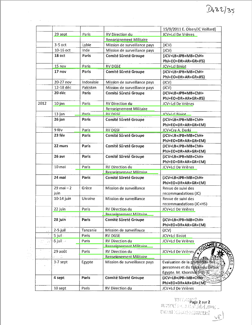 Söz konusu notlardan birinin üzerinde Ekim 2013’te Veillard tarafından elle “Fransız dış istihbaratına (DGSE) gönderildi” yazılmış bir nota rastlandı.