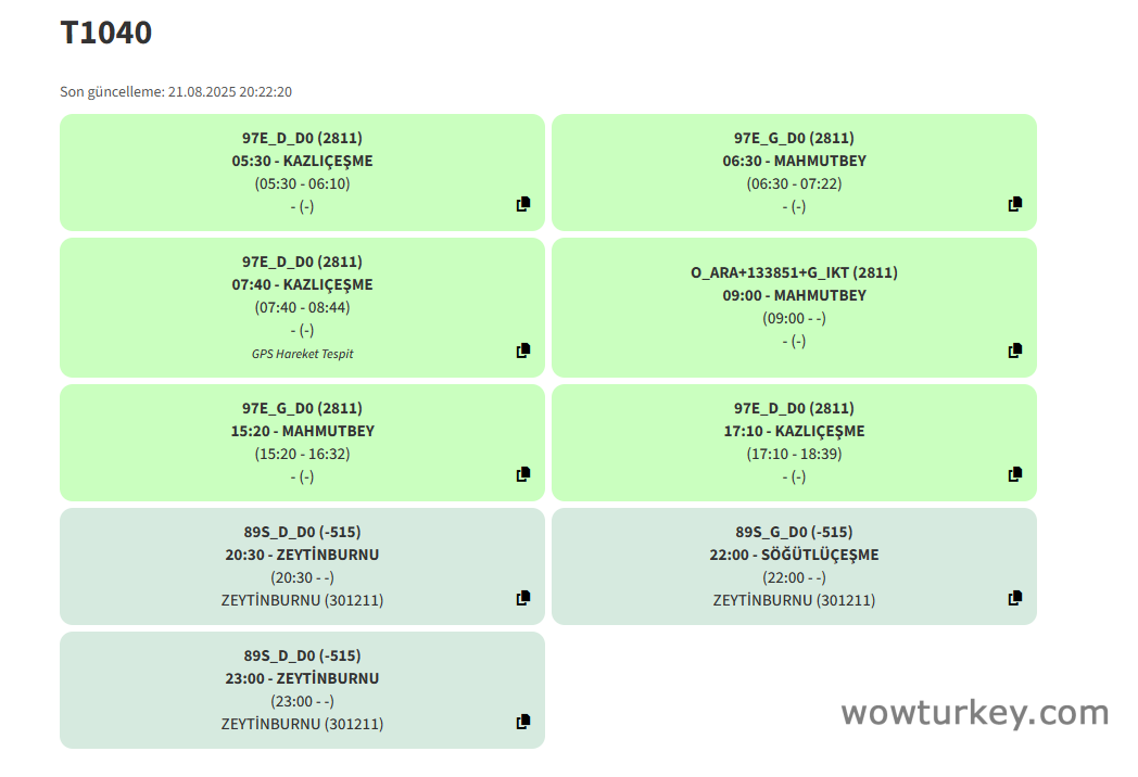 (darısı diğer full Kağıthane Garajı hatlarına)