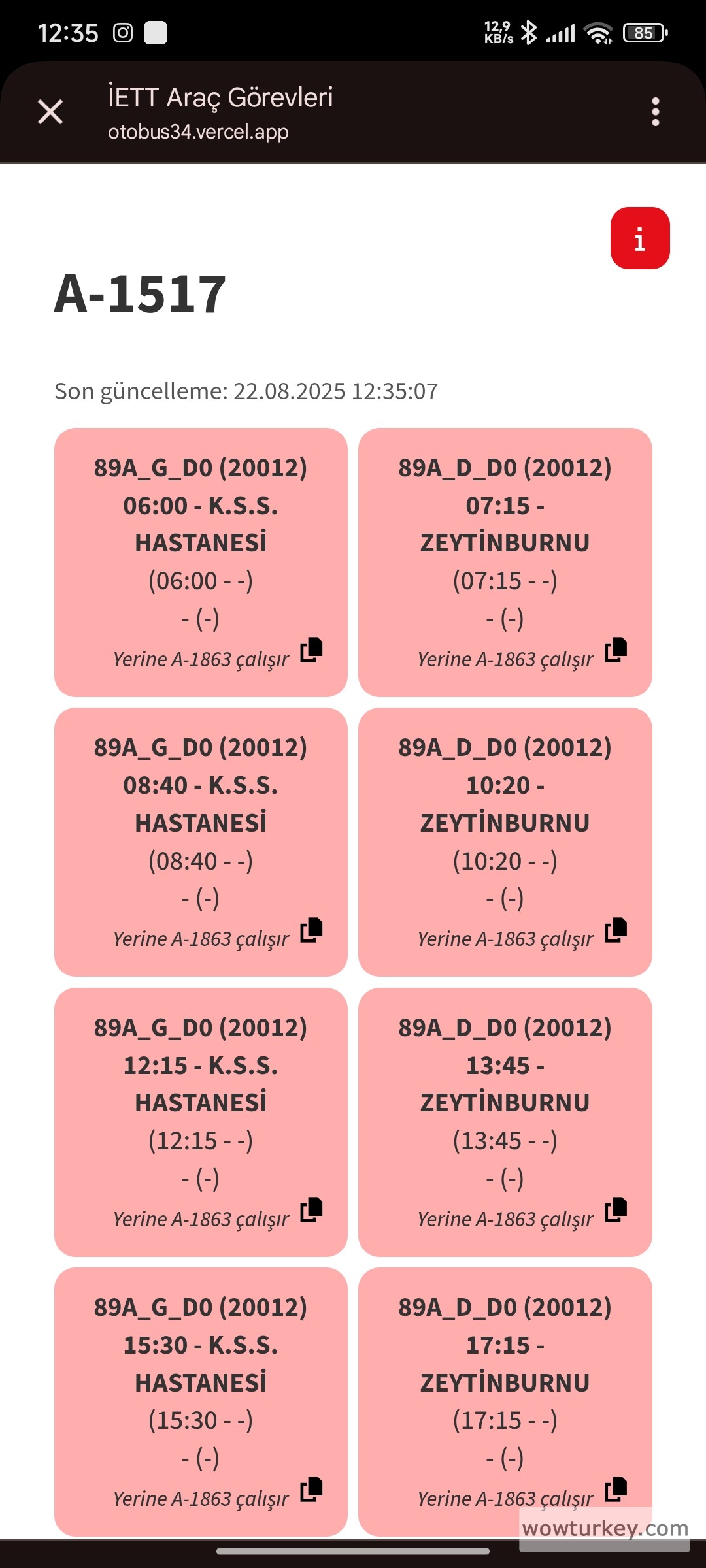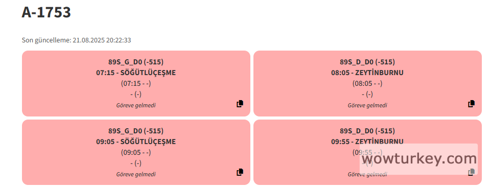 A-1753'ün gece seferleri için yerine 89S'ye T1040 verilmişEvet A-1753 bugün de motor arızasından sonra göreve gelmemiş. 2025 model araç baya şansız başladı. Hem göreve gelmemiş hem de sinyali bir gün öncede kalmış. Araç cidden şansız
