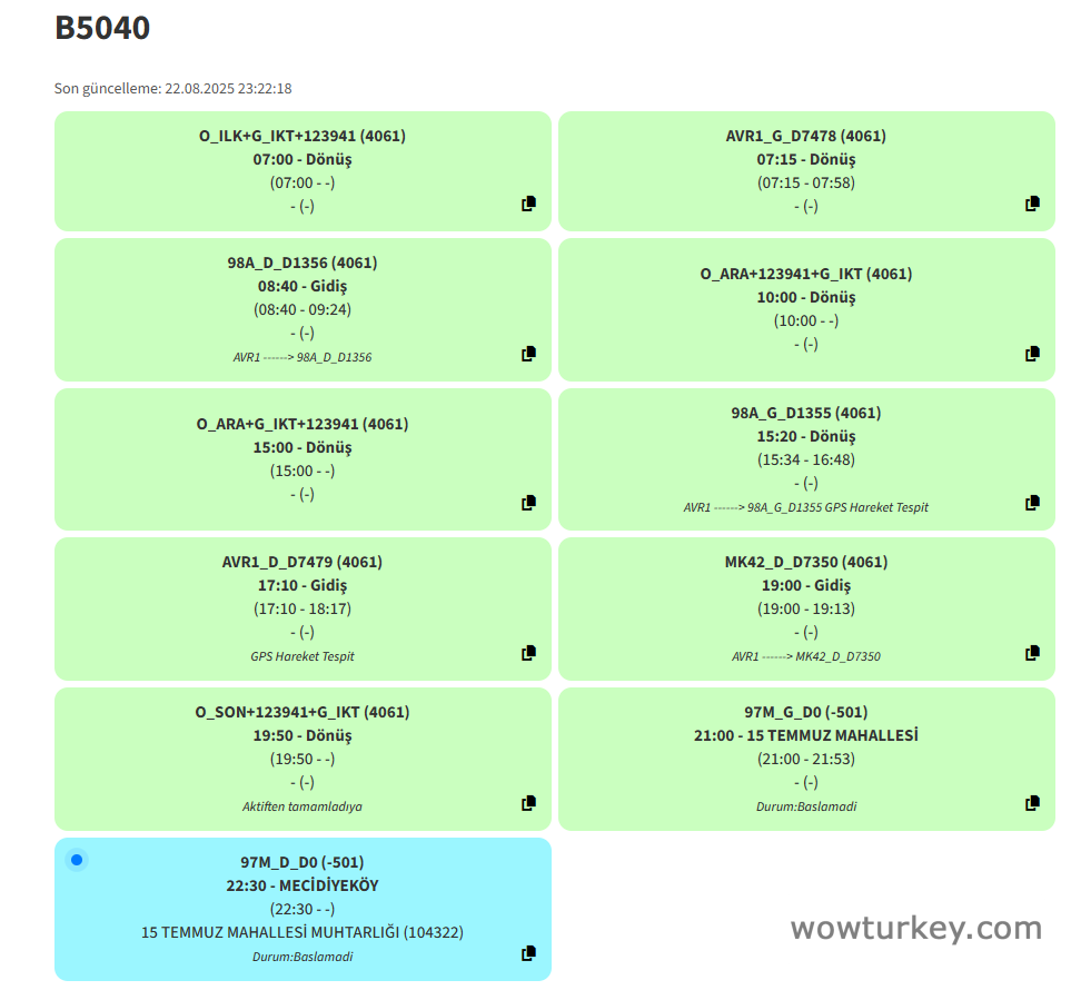 Erken vermişler yaA-1753'ün gece son iki seferi için yerine B5040 verilmiş