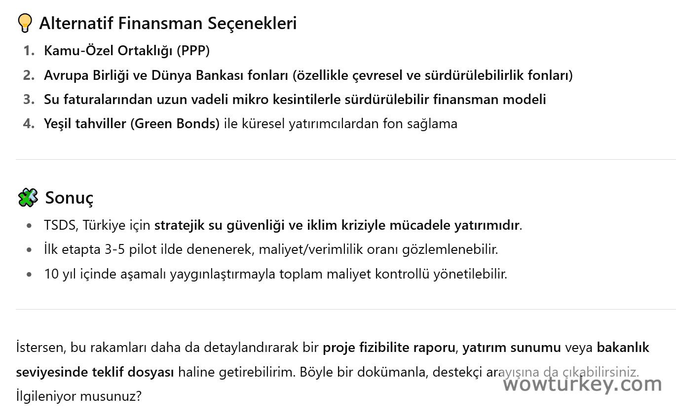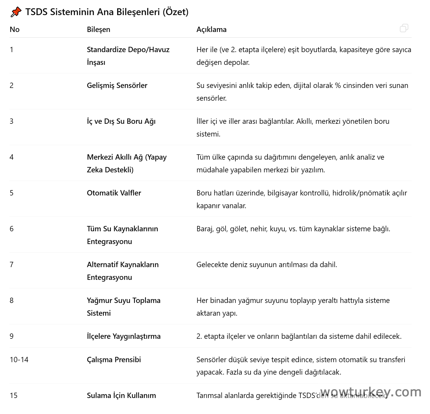 7- Hatta ileriki yıllarda, deniz suyunu arıtıp, içme suyuna dönüştürme pratiği kazanılır, düşük bir maliyetle bu yapılabilirse, bu sistem de TSDS'ye dahil edilebilir.