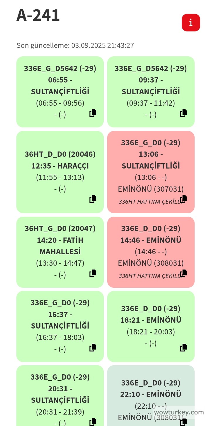 Pek öyle bir şeye rast gelmedim. Büyük ihtimalle gece tedbiren durmuyor olabilirler.@59Yunus34 İBB sosyal tesisleri durağının bina yıkılan yönünde durakta mı yıkıldı? 76O sürücüsü A-1555 durakta 3 kişi o otobüsü beklememize rağmen durmadı basıp gitti ıslık çalmama rağmen. Allah'tan kartımda kuruşlarla metrobüse para yetti gece gece kalıyordum orda terbiyesiz adam yüzünden
