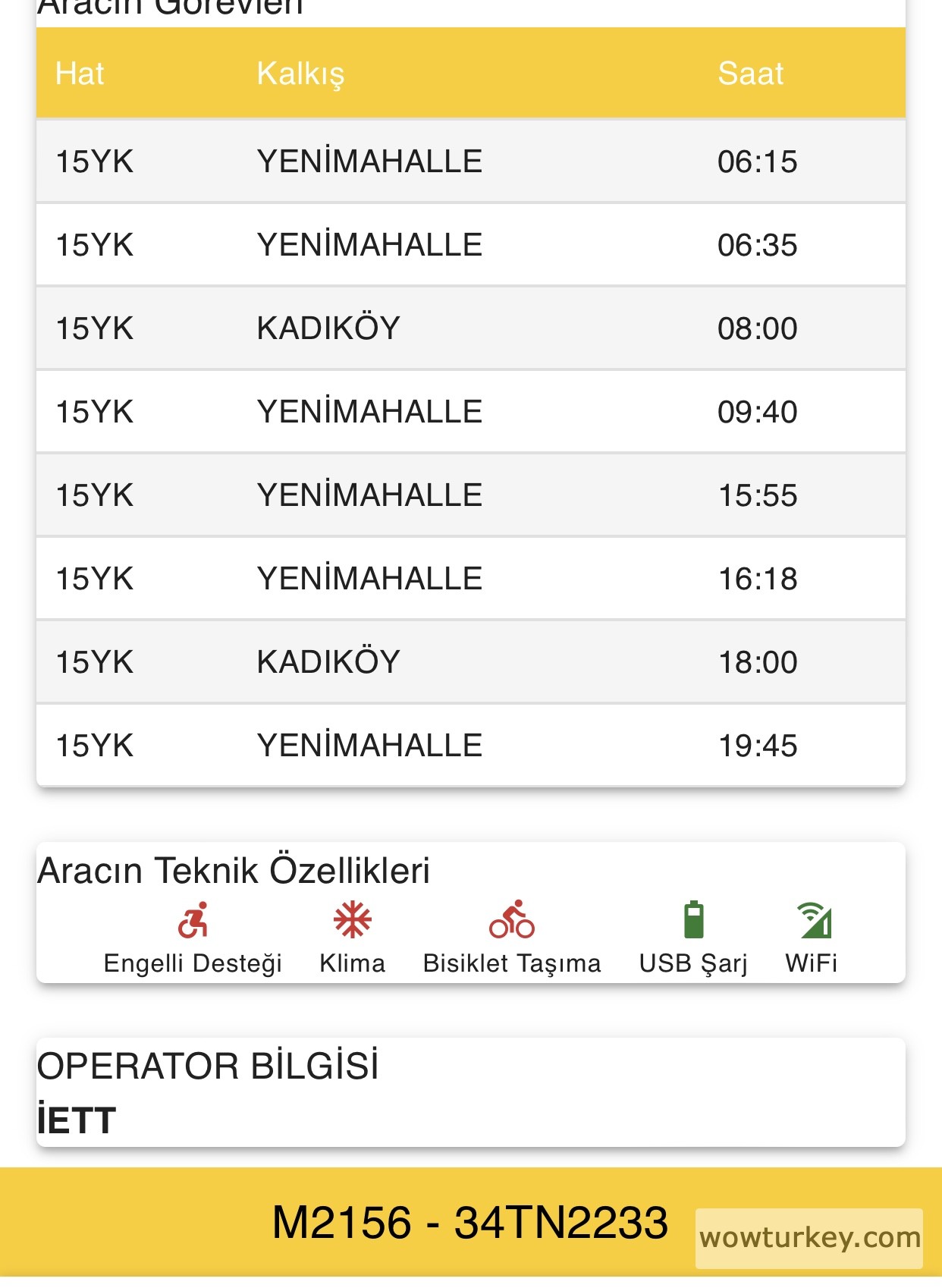 hattın sadece 1 sabah 1 akşam seferi olmasına rağmen sistemde gün boyu sefer gözüküyor