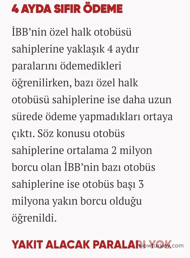 İBB, 4 aydır alacaklarını ödemediği halk otobüsü esnafına, 'Kasada para yok, size taksi plakası verelim' dedi. İBB’nin 3 bin 41 otobüsün her biri için ortalama 2 milyon lira borcu var. Bazı otobüslerin borcu 3 milyon liraya ulaşmış durumda.
