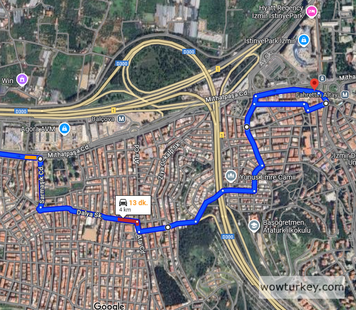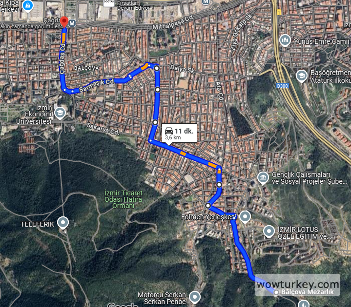 Yeni mezarlık - Duygu sk - kabristan - Duru park - belediye - çifte selviler - yeşil cami - molla kuyusu - balçova metro