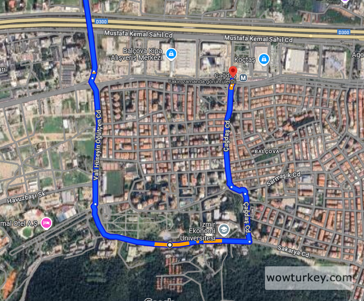 Balçova Metro - Çağdaş Metro - Ekonomi - Teleferik -Salih dede lisesi - balçova itfaiye - molla kuyusu - balçova metro