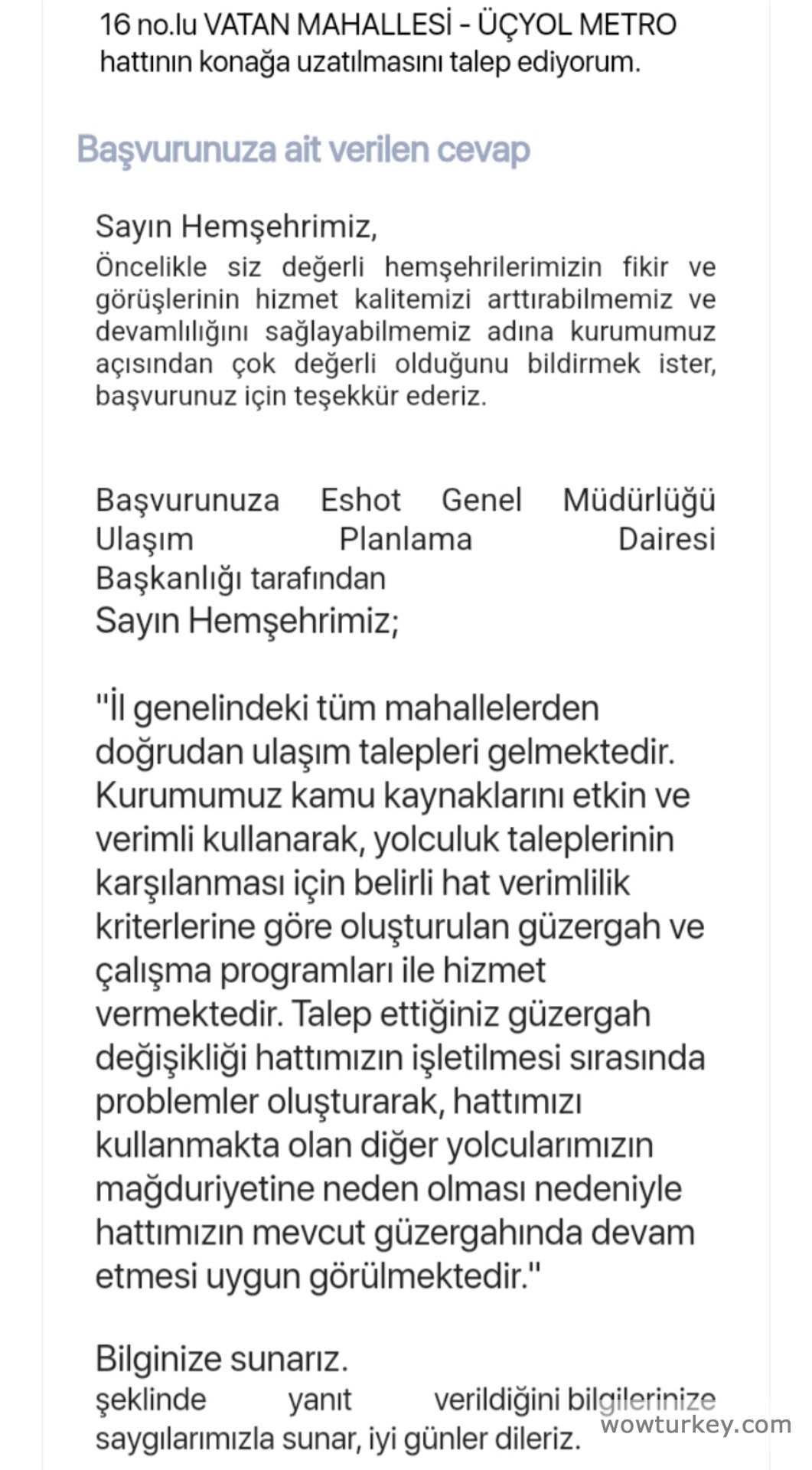 Ben geçen sene önerdim de bana böyle cevap vermişlerdi16 nın hizmet ettiği parkur yüzünden toki ye giderse tokiden binen sayısı az olur