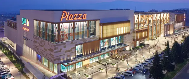 Kent merkezinde bulunan Piazza; ulaşım kolaylığı, yürüyen merdivenleri, panoramik asansörleri ve açık-kapalı toplam 1.100 araçlık otoparkı ile ziyaretçilerine rahat ve ferah alışveriş yapmak imkânı tanımaktadır. Bünyesinde 3M Migros, LCW, Koton, Media Markt, Vatan Bilgisayar, Playland, Defacto, E-bebek, Flo gibi ana markaları ile her yaşa ve zevke hitap etmektedir.