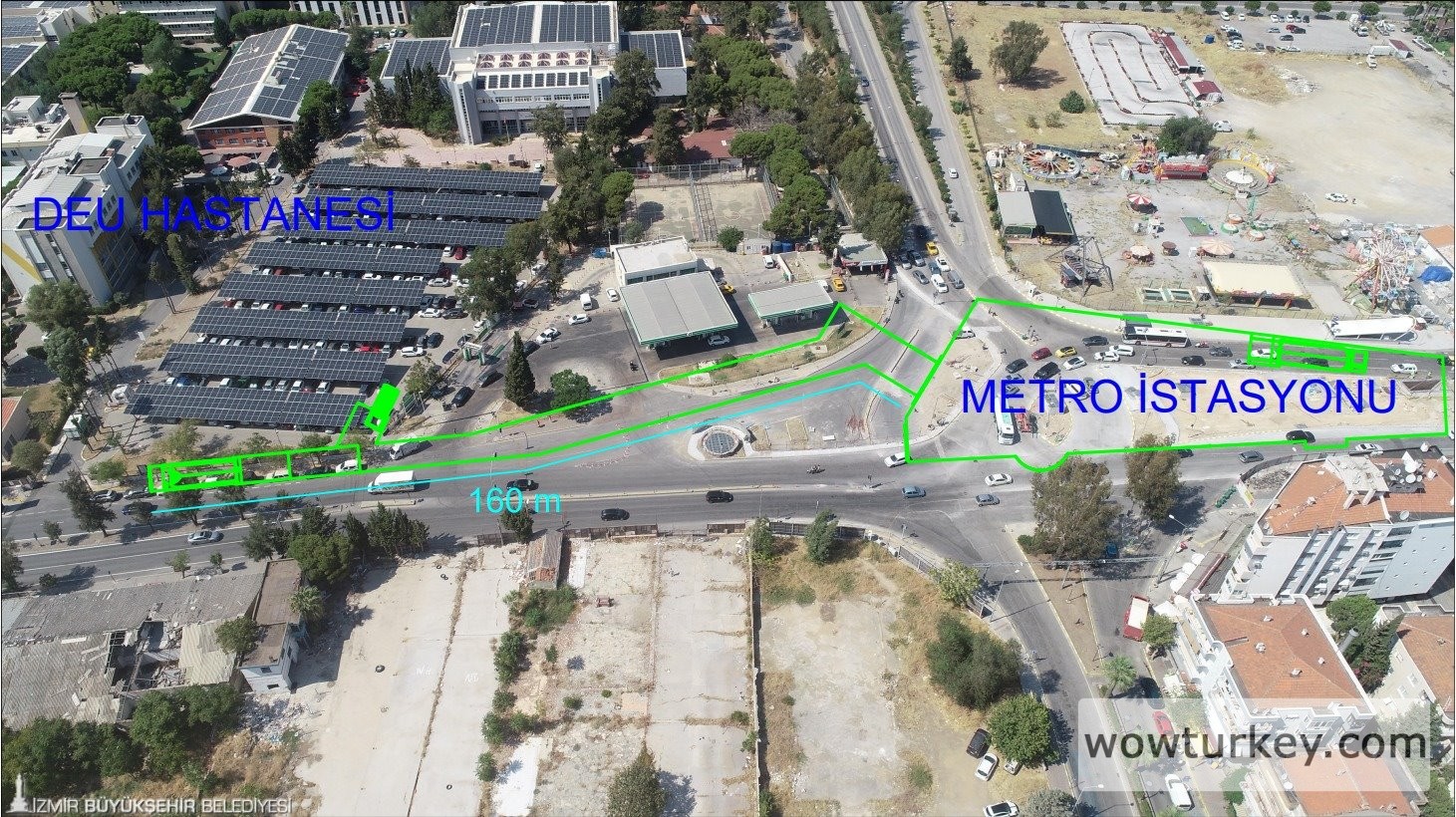 İzmir Büyükşehir Belediyesi, araç ve yaya trafiğinin yoğun olduğu İzmir Metrosu’nun Dokuz Eylül Üniversitesi Hastanesi İstasyonu çıkışını yeniden düzenliyor. Güvenli ve konforlu ulaşım için yurttaşlardan gelen talepler üzerine harekete geçen Büyükşehir, istasyon çıkışı ile hastane arasında 160 metrelik yaya tüneli yapacak.