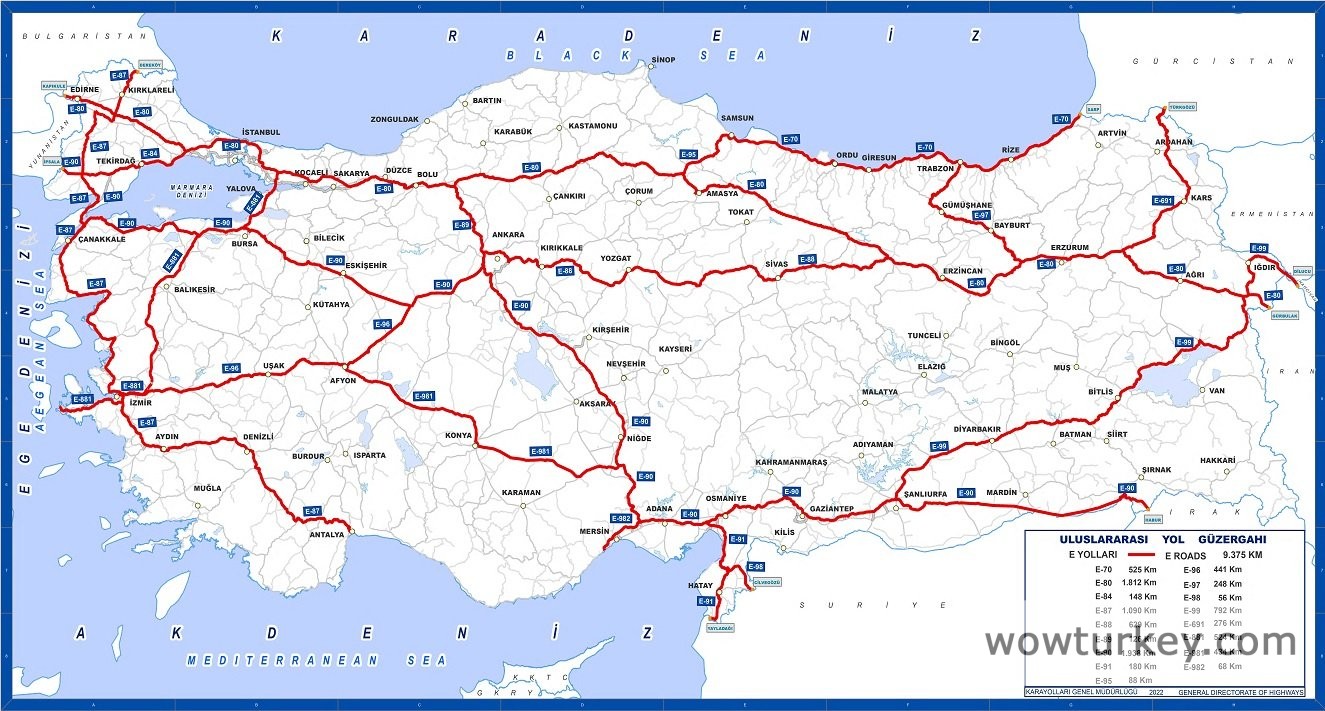 Ülkemizdeki E-Yolları uzunluğu toplam 9.375 km' dir.