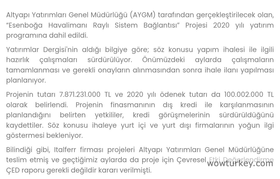 • Toplam 36 kilometre uzunluğunda projelendirilen YHT Gar–Kuyubaşı–Esenboğa Havalimanı Metro Hattı üzerinde 12 istasyon yer alacak. Yetkililer, yalnızca güzergahın değil, istasyon giriş-çıkış yapıları, istasyon yerleşimleri, plan-profil çizimleri ve işletme kriterlerinin de güncellendiğini belirtti. Projenin mevcut ulaşım sistemleriyle tam entegre, fizibilitesi yüksek ve güncel ihtiyaçlara cevap verecek bir yapıya kavuşması için kapsamlı bir çalışma yürütüldüğü vurgulandı.