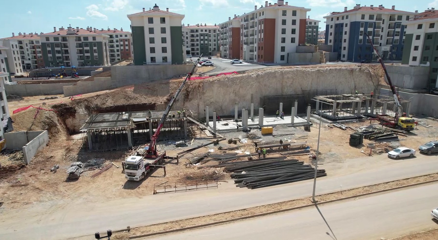 TOKİ - Emlak Konut tarafından yapımı devam eden kentsel tasarım ve meydan düzenleme projesi kapsamında Hocaömer ve Yenipınar mahallelerindeki şantiyelerde son durum.