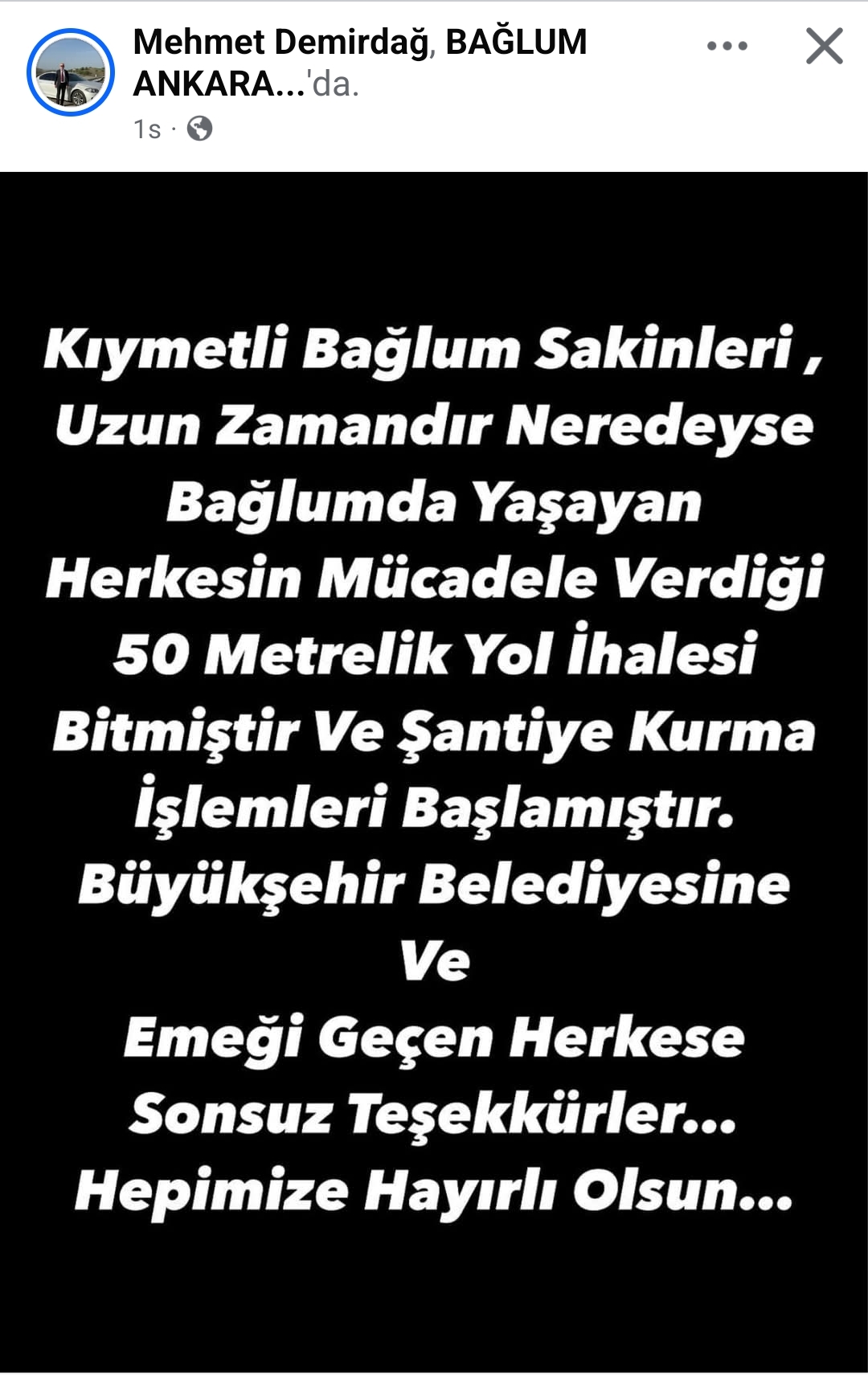 Bağlum Hisar Mahalle muhtarının paylaşımı arkadaşlar