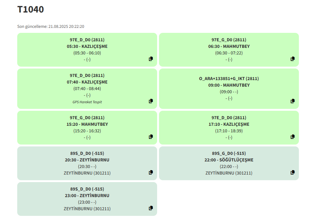 (darısı diğer full Kağıthane Garajı hatlarına)