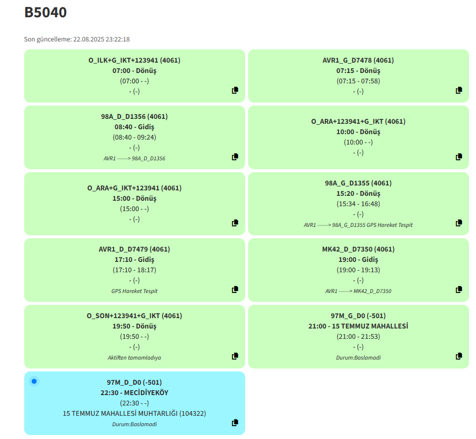 Erken vermişler yaA-1753'ün gece son iki seferi için yerine B5040 verilmiş