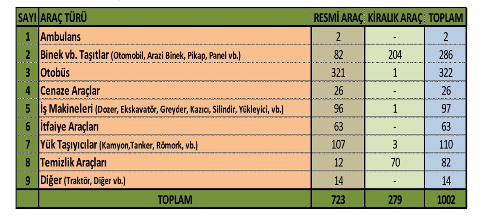 Belediye 2024 araç sayısı bu yani burda 321 bile diyor