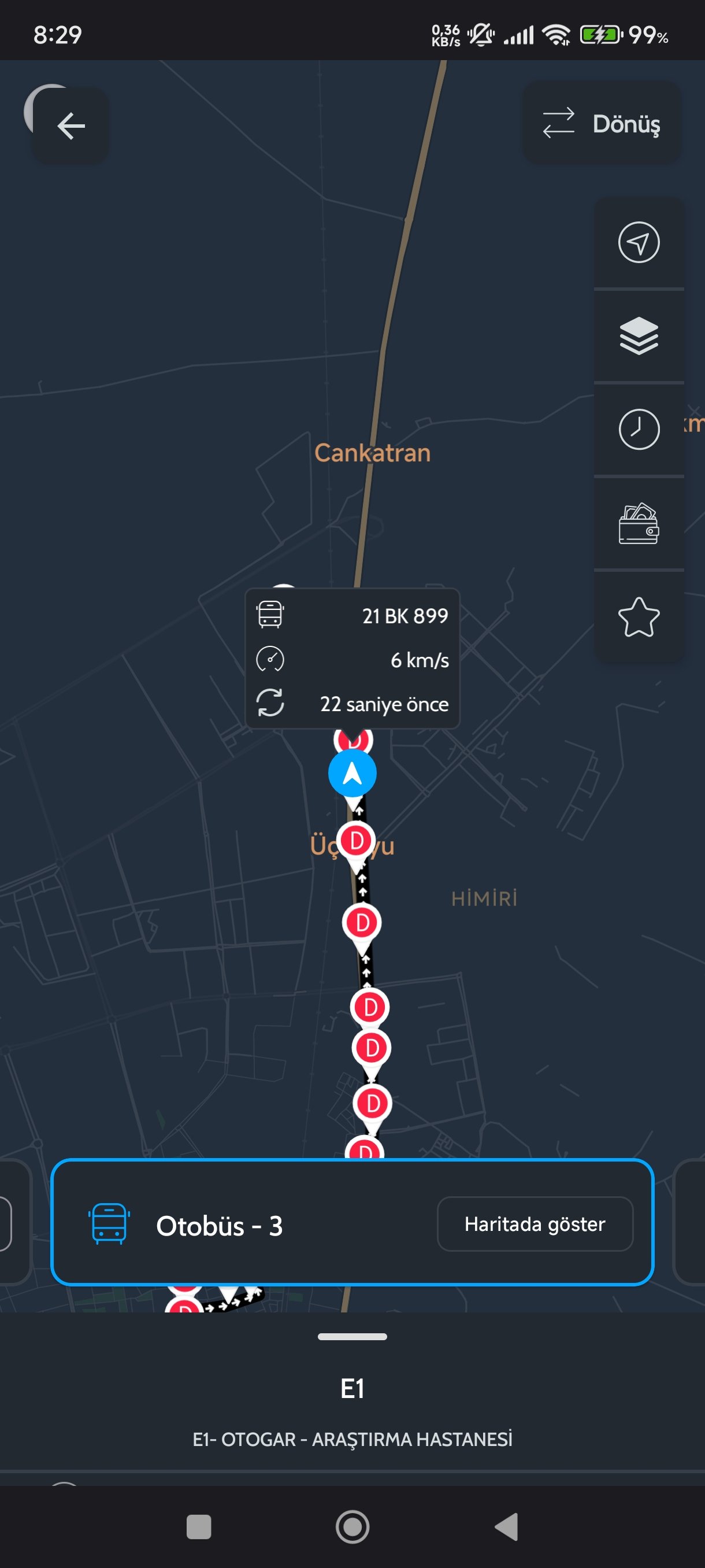 E8 nöbetçi 2 sefer OPET şeyh Bedrettin caddesinden geçti 3 sefer hattına geldi