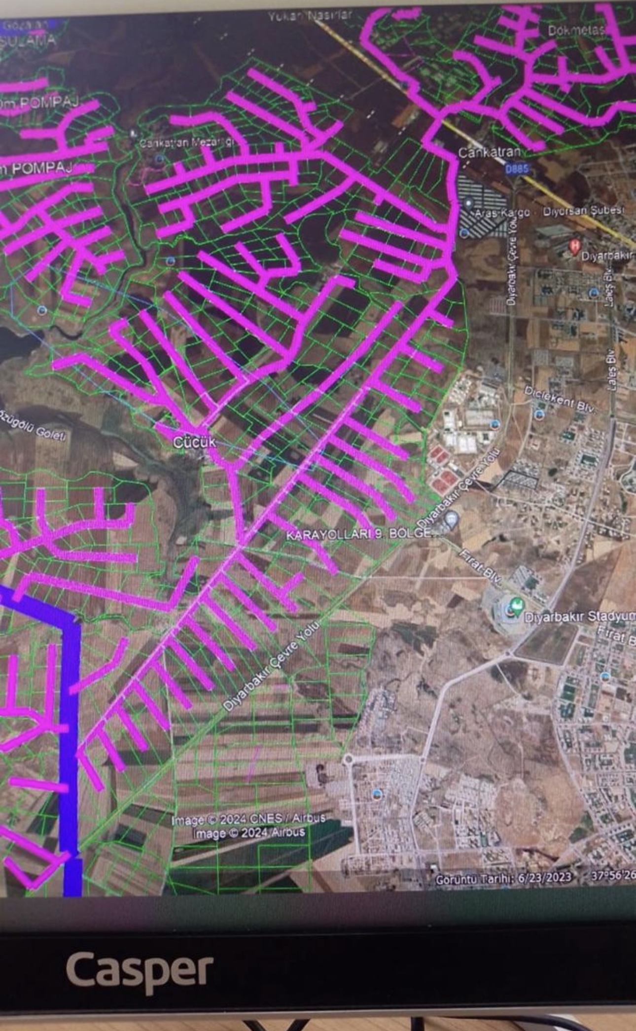 eğer bu gercekten dsiden alınmıssa dsi içme suyu hattı yapamaz tarımsal sulamaya kanal yapar çevre yolunun üstü bu doğru ise komple tarım arazisi ama garbiçanakcıda herhangi bir sulama gözükmüyor bu görsellerdeBuralar bence ana su hattı düşenecek yerler çünkü sehrin yakininda sulama projesi yapilmaz imar parselizasyonu öncesinde su hatlarının şehir içi şebekenin geçeceği ana hatlar belirlenmiş diye düşünüyor ve değerlendiriyorun.