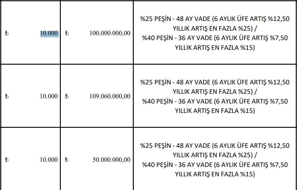 Mesela 29806 adadaki 3773 m2 benzinlik alanı Mayıs 2024 te metresi 19.000 liradan ihaleye çıkmıştı. Ihale sonucunu hatırlamıyorum,ancak en az 24-25 bin gibi bir rakamı gördüğüne eminim.