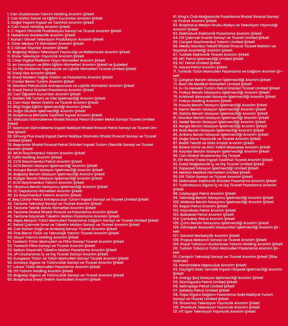 Holding bünyesindeki Habertürk ve Show Tv de dahil 121 şirkete el konuldu.