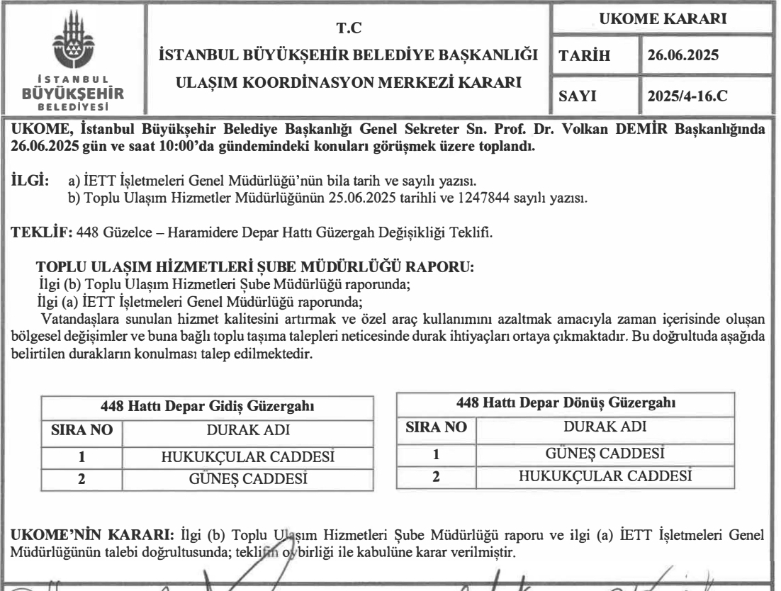 Hizmet kalitemizi artırmak amacıyla 78C Yunusemre Mahallesi – Fenertepe hattımızın güzergâhı, 02 Eylül 2025 Salı gününden itibaren Sultangazi Peronlar, Gazi Esentepe, Yunusemre Mahallesi ve Nene Hatun durakları üzerinden hizmet verecek şekilde düzenlenmiştir.
