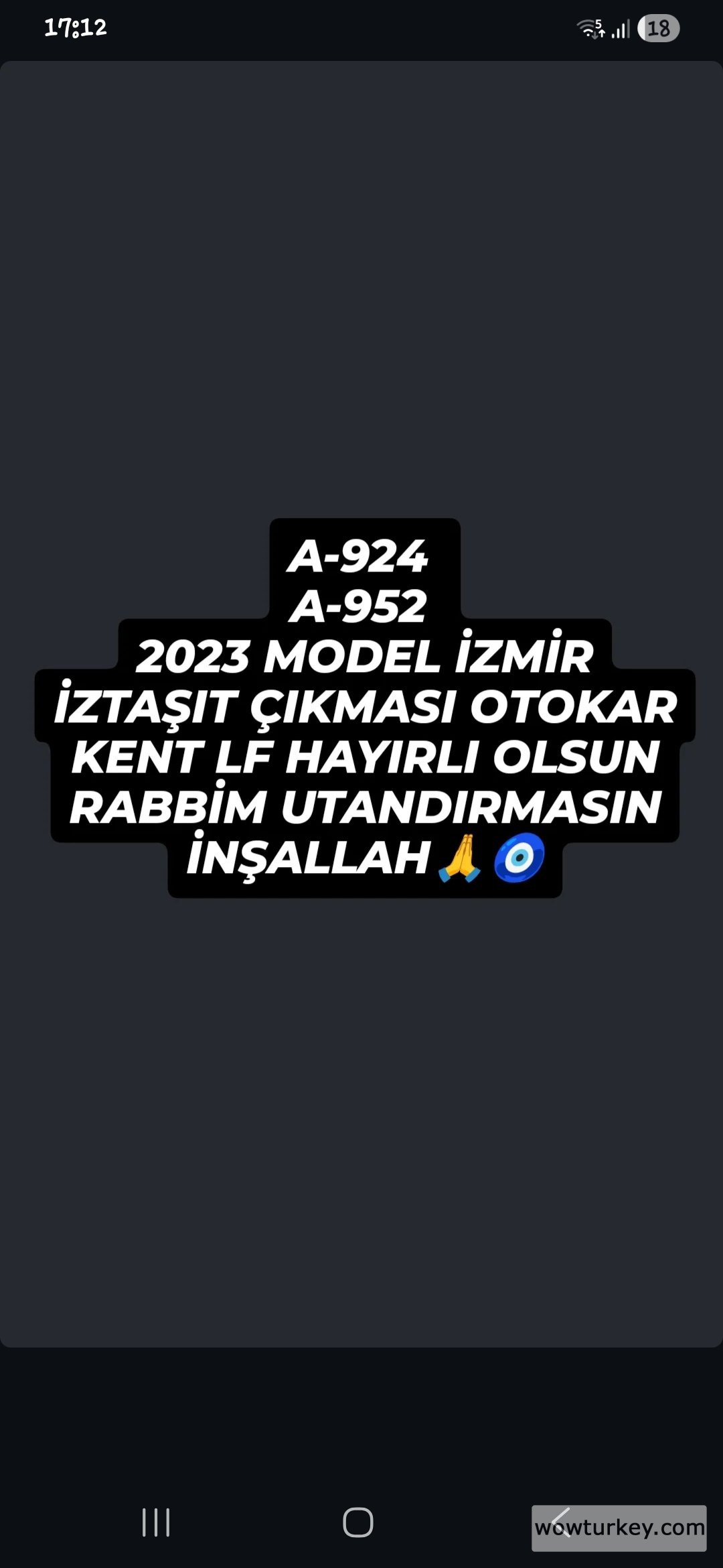 A-952 2016 model Akia Ultra LF12 olan aracını 2023 model iztasit çıkması Otokar Kent LF ile değiştirmiştir hayırlı olsun