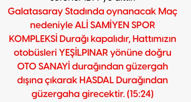 Hocam hala durak yönleri eskisi gibi değiştirmediler yeşilpınarda bazı duraklarda zincirlikuyu yönü yazıyor