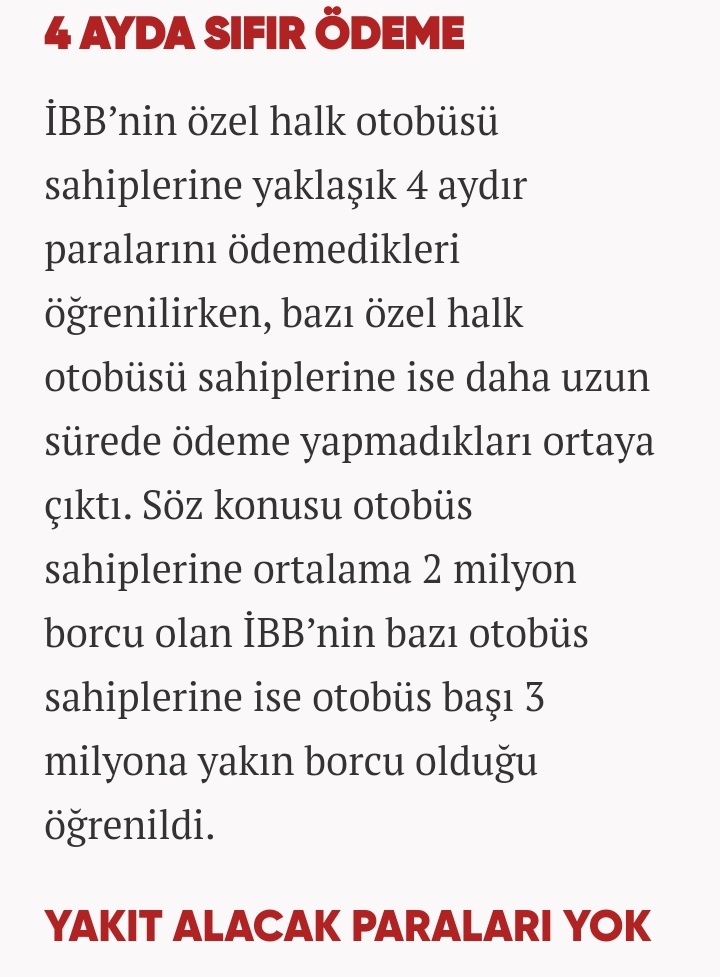 İBB, 4 aydır alacaklarını ödemediği halk otobüsü esnafına, 'Kasada para yok, size taksi plakası verelim' dedi. İBB’nin 3 bin 41 otobüsün her biri için ortalama 2 milyon lira borcu var. Bazı otobüslerin borcu 3 milyon liraya ulaşmış durumda.