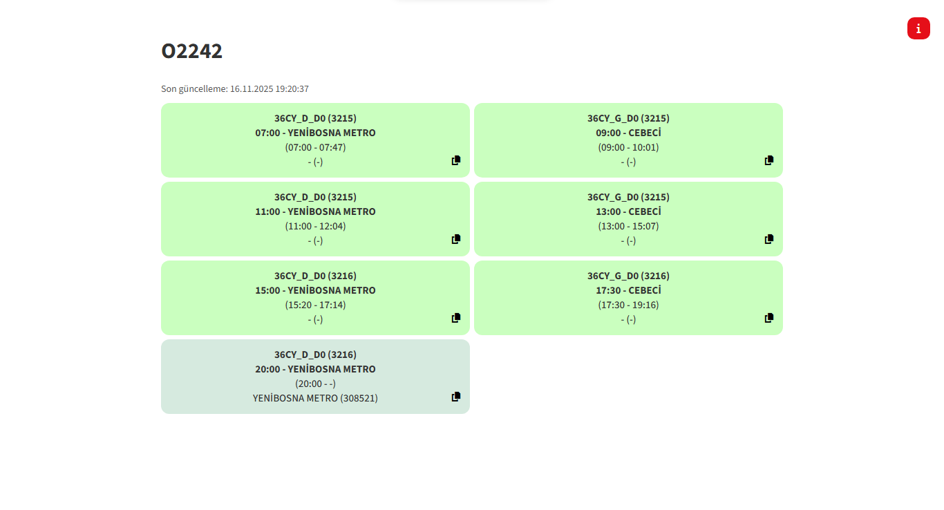 36CY hattının sefer süresi de fena.3 seferi 2 saat sürmüş