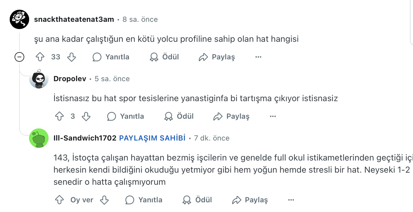 Zamanında ÖHO’da çalışmış demekki. 1-2 senedir hatta bulunmadığını yazmış zaten143 İETT hattı diye biliyorum