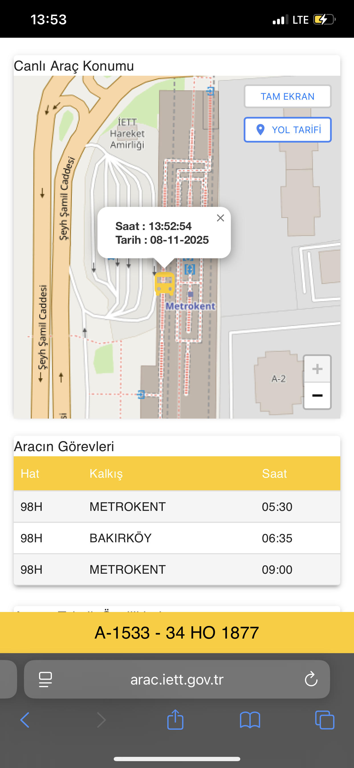 Bugün A-1533’e siftah yapacağım dedim ya saat 09:00’dan sonra sefer verilmemiş.![]()