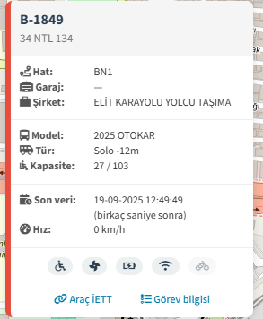 Alibeyköy bölgesinden BN1 bölgesine geçen B-1847 2013 Model Temsa Avenue LF olan aracını 2025 Model Otokar Kent LF ile değiştirmiştir. Hayırlı olsun