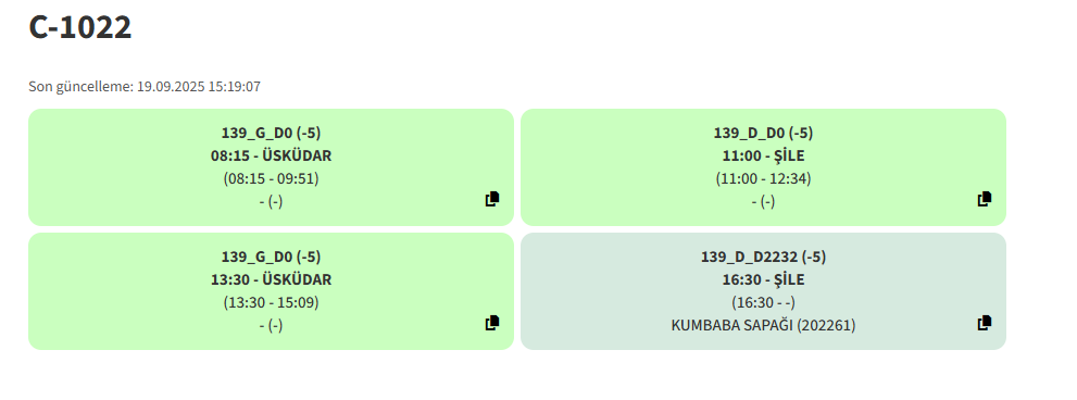 Bu araçlar 2 gündür (A-1550 ve B-1861 hariç. Onlar bugün sadece) bu şekilde değişmiş olarak çalışıyor. Bölge değişimi olmuş olabilir