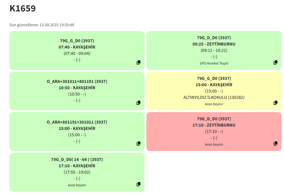 Kaza yapmışK1659 Altınyıldız İlkokulunun oradaydı Öğlen 3'ten beri birşey mi var acaba