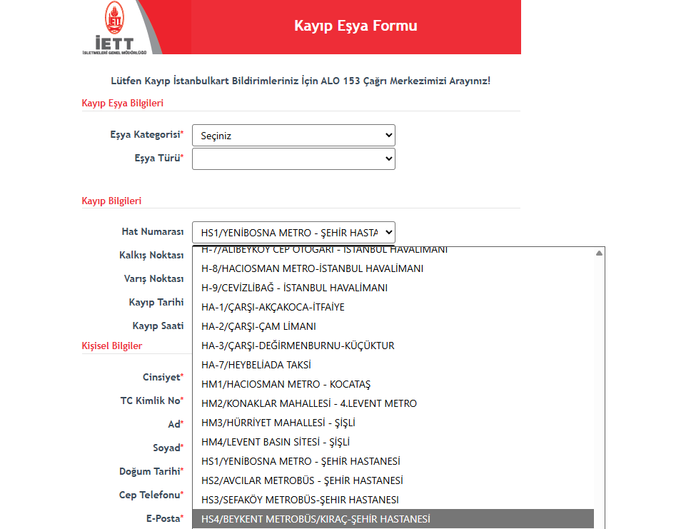 Kast ettiğim tam güzergahı var mı elimizde. Bahçeşehir’in içine girip girmeyeceğini merak ediyorum.Kayıp eşya formunu doldururken hat seçiminde HS4 adlı bir hat çıkıyor: https://crm.iett.gov.tr/alo153cozummerkezi/kayip_esya
