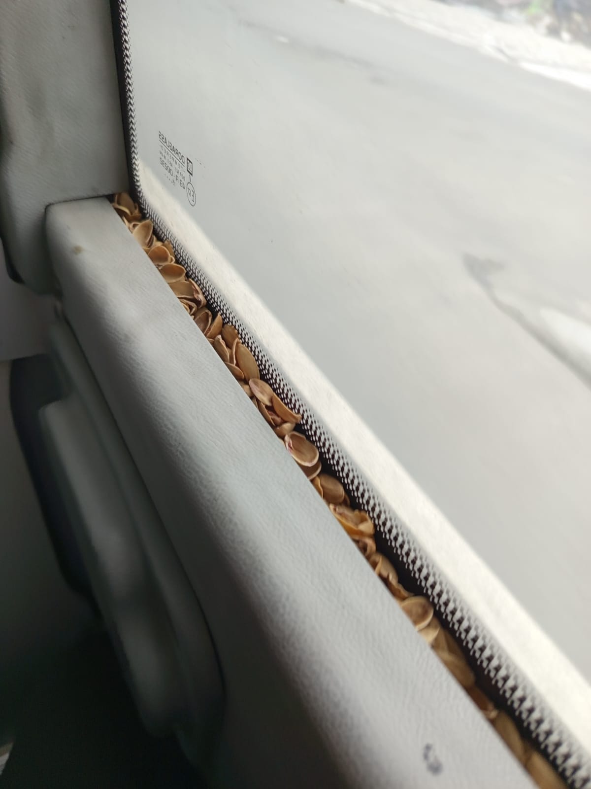 19.03.2025 tarihinde A-1876 BN1 Hattında en arka cam kenarı koltuğunda karşılaştığım utanç verici manzara. Antep fıstığı yiyip cama dizmişler