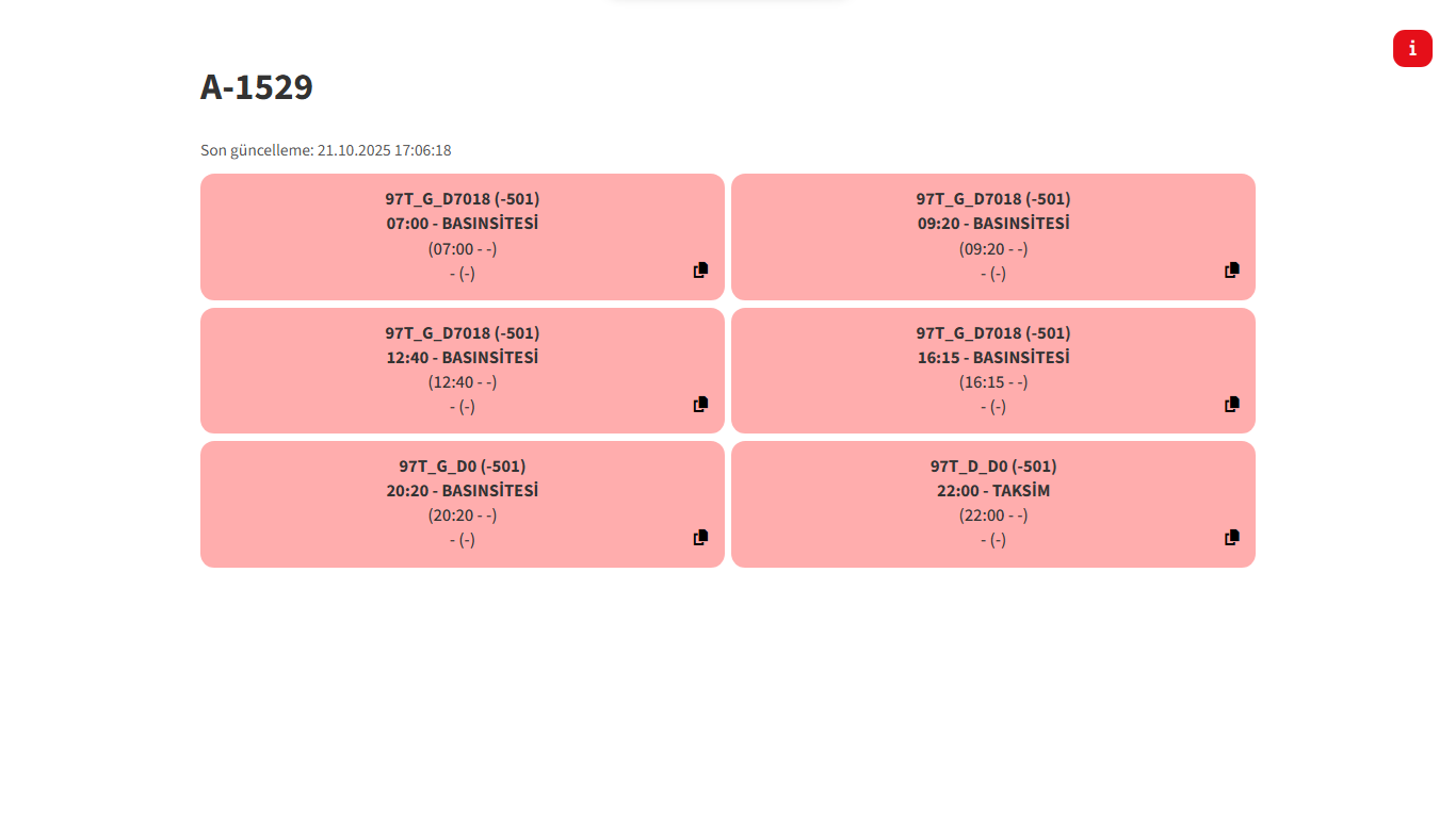10 dakika geç olacak şekilde dönmüş araç seferlerineA-1805 15 Temmuz Peronlarına gelmiş ama seferleri hala kıpkırmızı
