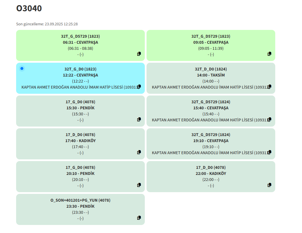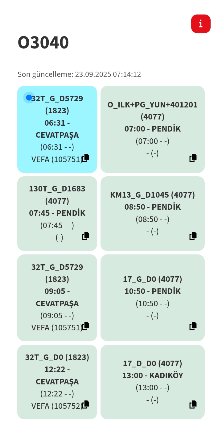 8:50’de KM13 seferini yapacak ondan sonra 9:05’de 32T. Güzel filo yönetimi