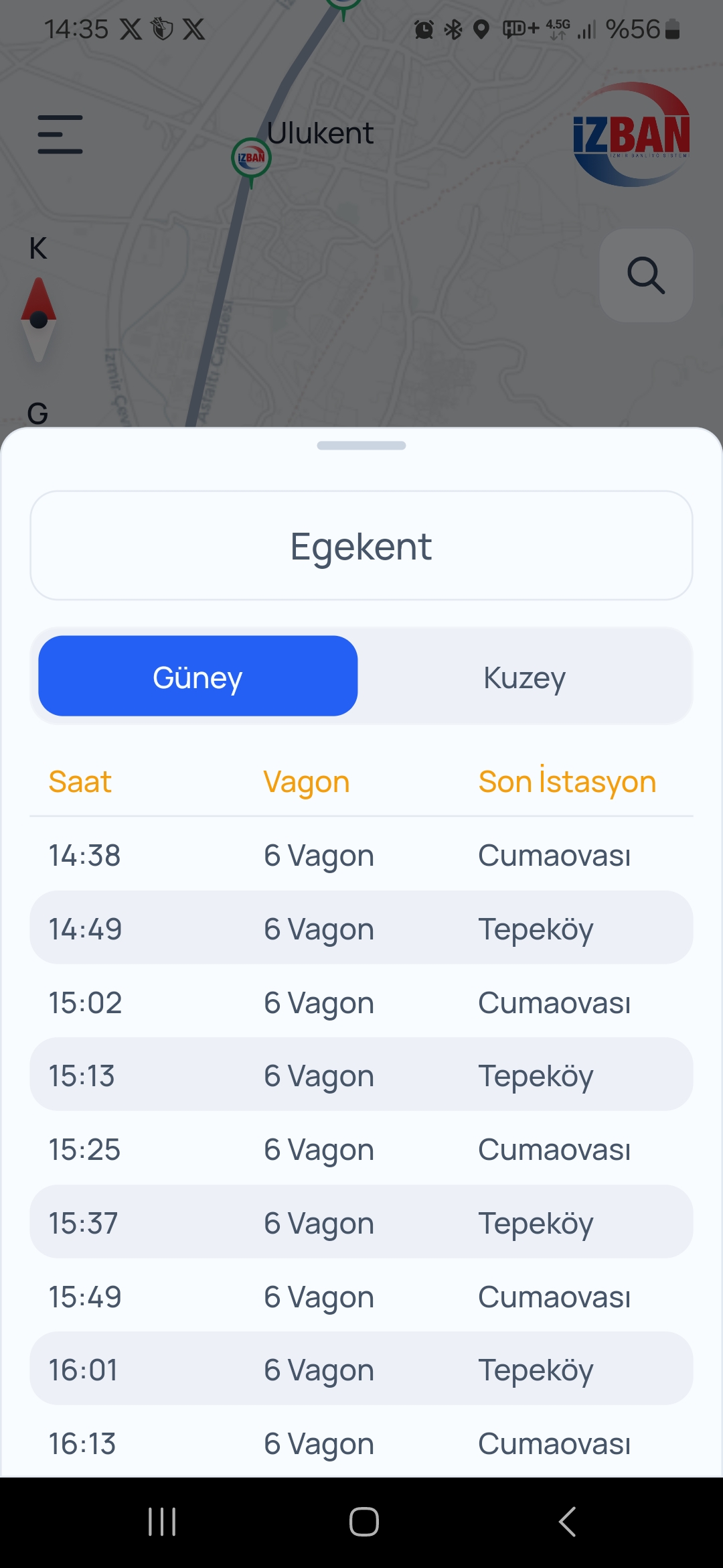 Bugün uygulamada izbanın bütün seferleri 6 vagonlu görünüyor iki yönde de bir tane bile 9 vagonlu sefer yok.