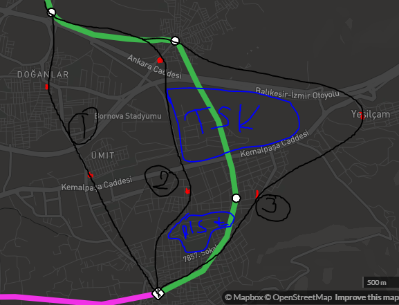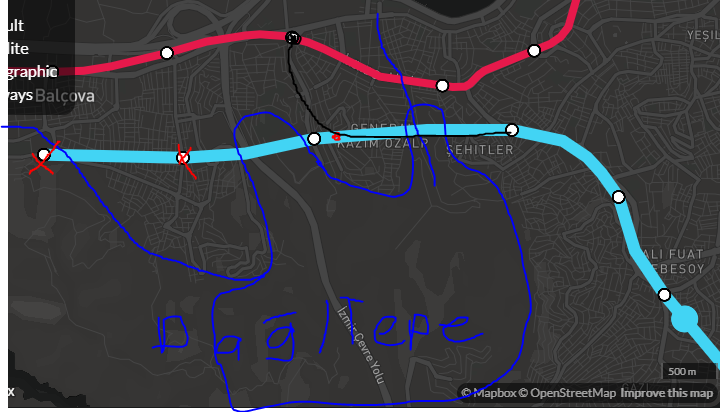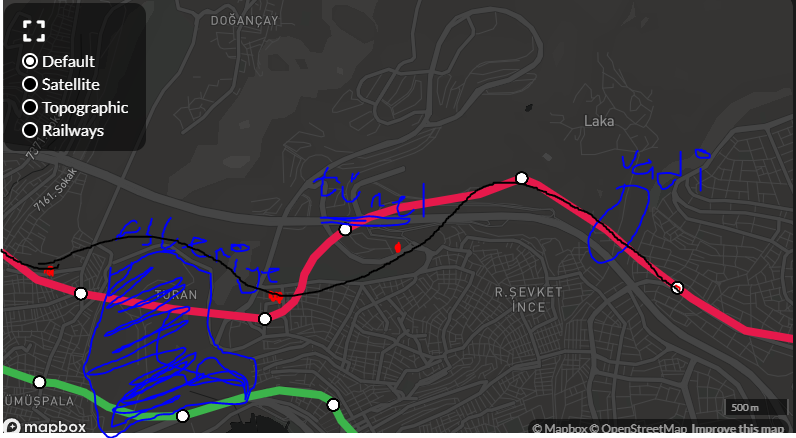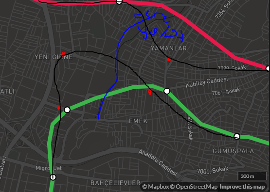 İstasyonları koruyarak olabilecek çözüm (kırmızılar istasyonların yeni yerleri)