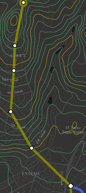 - Osmangazi-Egekent: Yapım esnasında sıkıntı çıkabilecek Turan güzergahı, eğim deltasının fazlalığı ve Cumhuriyet ile İnonü istasyonları yapılsa bile yokuştan dolayı istasyona ulaşımın zor olacak olmasından dolayı bence mantıklı olabilecek 3 farklı güzergah çizdim. Buna ekleme yapabilecek biri varsa lütfen yardım etsin.