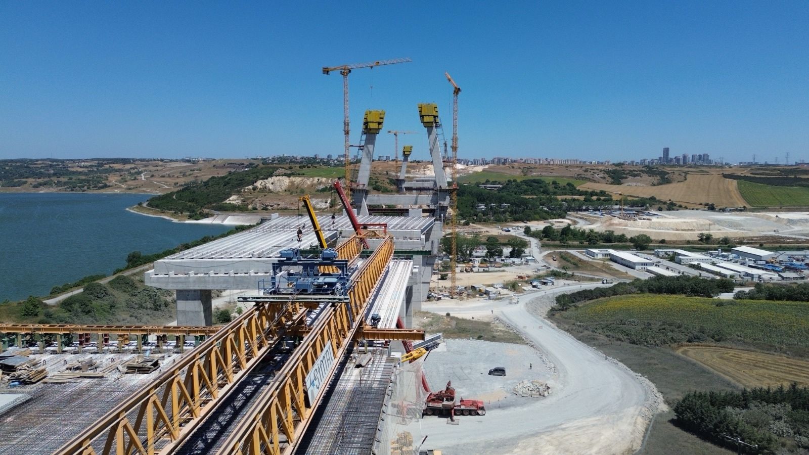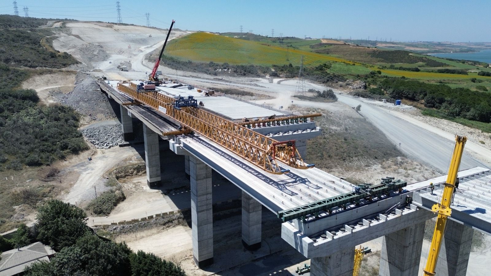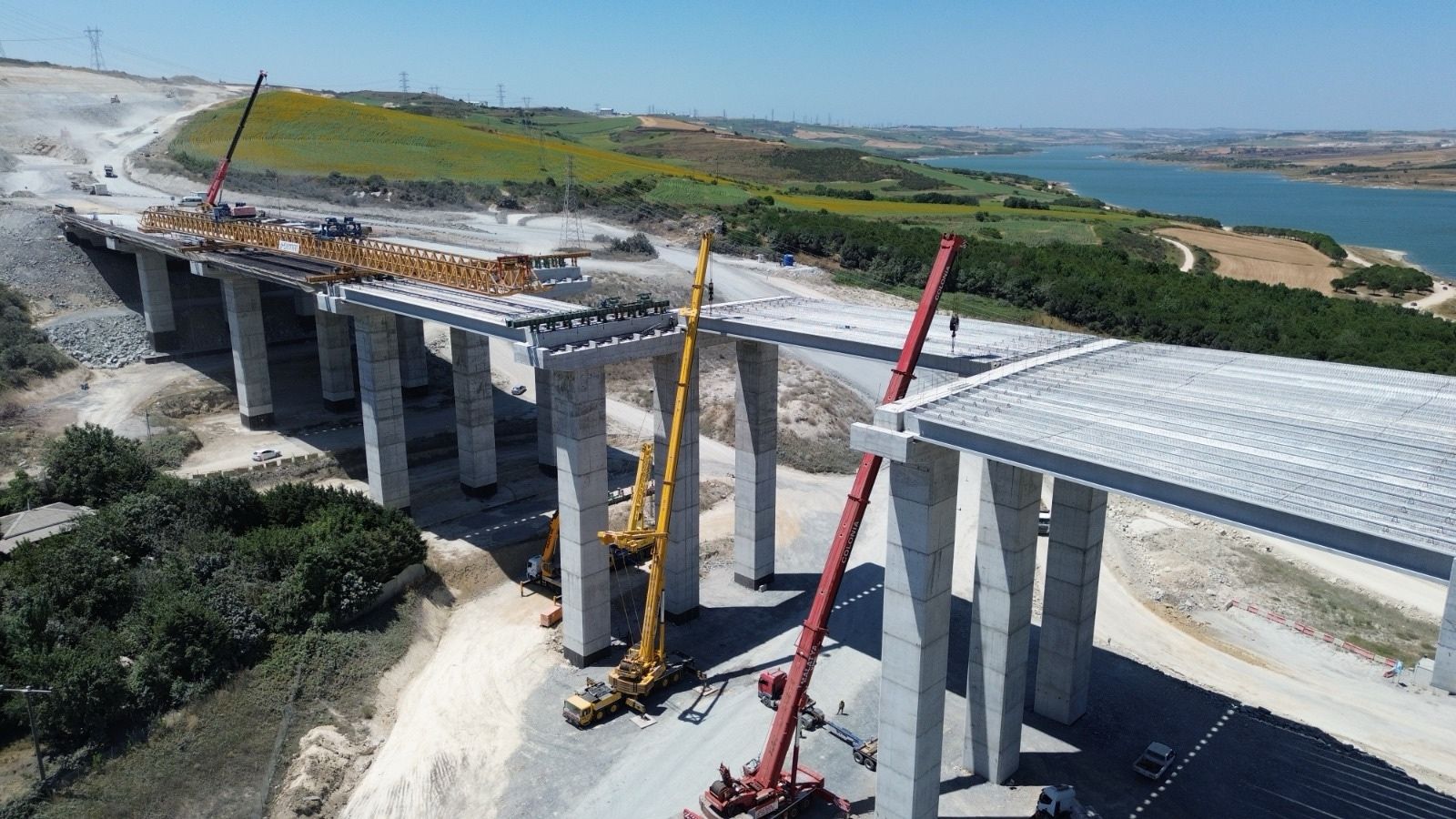 Kuzey Marmara Otoyolu – Sazlıdere Köprüsü şantiyesinde, 45 km’lik ulaşım hattı boyunca gözle görülür bir ilerleme kaydedildi.