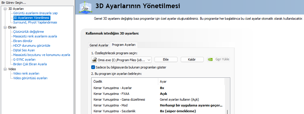OMSI'nin kendisinde kanar yumuşatma (AA) ayarı yok ama sürücü ayarlarından açılabiliyor ve sorunsuz çalışıyor. Ben nVidia kart üzerinde şu şekilde kullanıyorum: