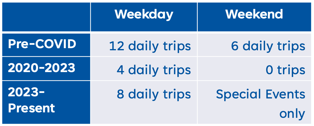 Getting a stable subsidy source is important to make a service useful, which means different things to different people. For people who don’t work 9-to-5, it means having bus service available predawn or past sundown. For people living on other people’s schedules (work, school, appointments), it means service frequent enough to show up and go and arrive at both ends in a reasonable amount of time. A frequency of 15 minutes is the point where people will make spontaneous trips and command the schedule to memory, and generally results in the least time wasted in terms of endpoint connections, and still reasonable to make with timed transfers.”
