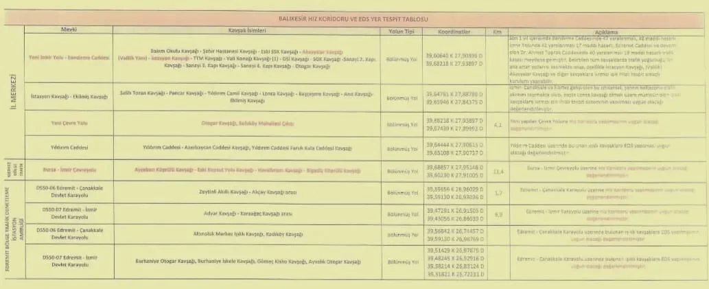 Diğer yandan hız koridoruyla ilgili son kararı Balıkesir Valiliği, İl Emniyet Müdürlüğü ve Balıkesir Büyükşehir Belediyesince oluşturulacak komisyon verecek.