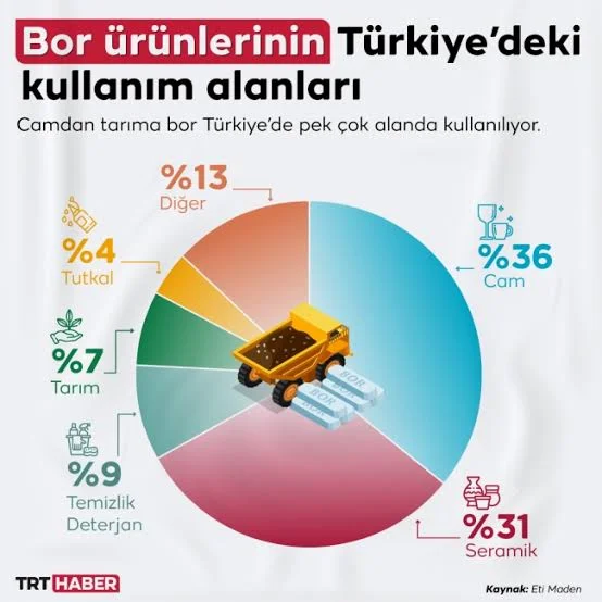 • Boraks: Cam, seramik ve gübre üretiminde kullanılır.