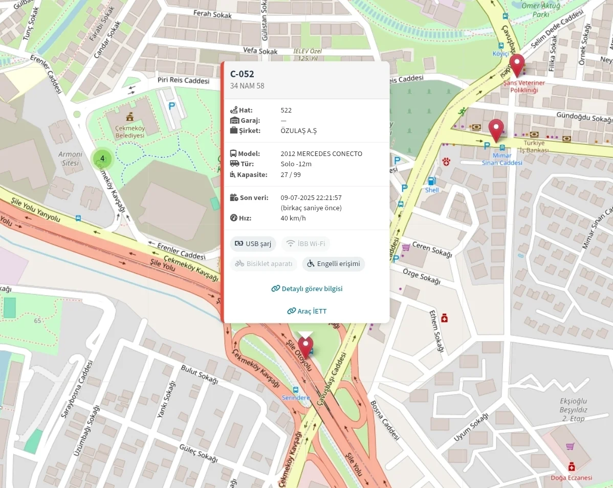Şu anda İETT sitesinde de bir duyuru olmamasına rağmen güzergahtan çıktı. Alemdağ Caddesi'nden gitmesi gerekirken Şile Yolu'nu kullanıyor.
